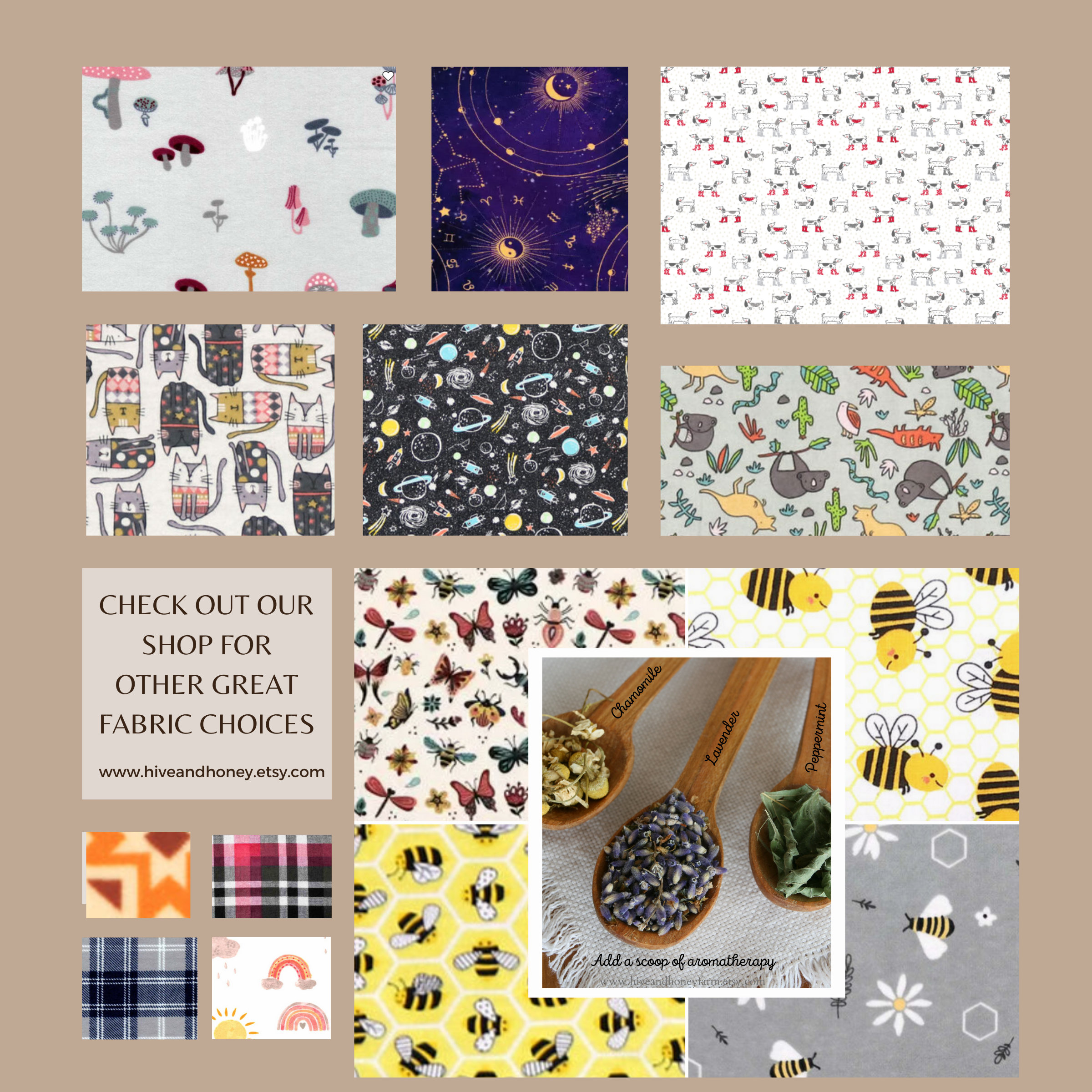 Add some aromatherapy to your rice pad by choosing one of our optional scents: lavender bud, chamomile flowers or peppermint leaves