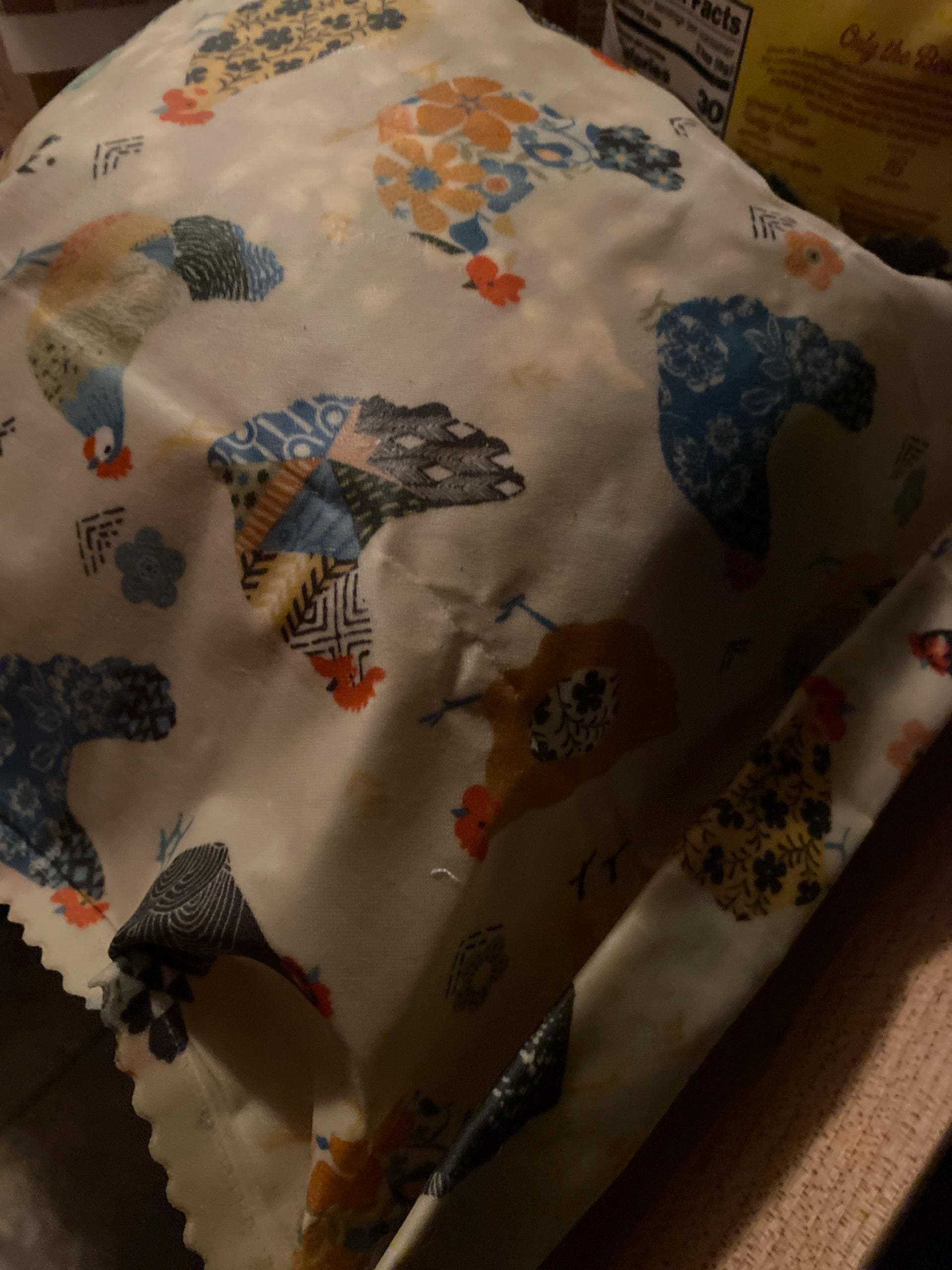 Beautiful print! And perfect eco family Bee wrap for storing bread! Will definitely keep homemade bread fresh. Closes easily by folding the flap over. Love ❤️ it!
