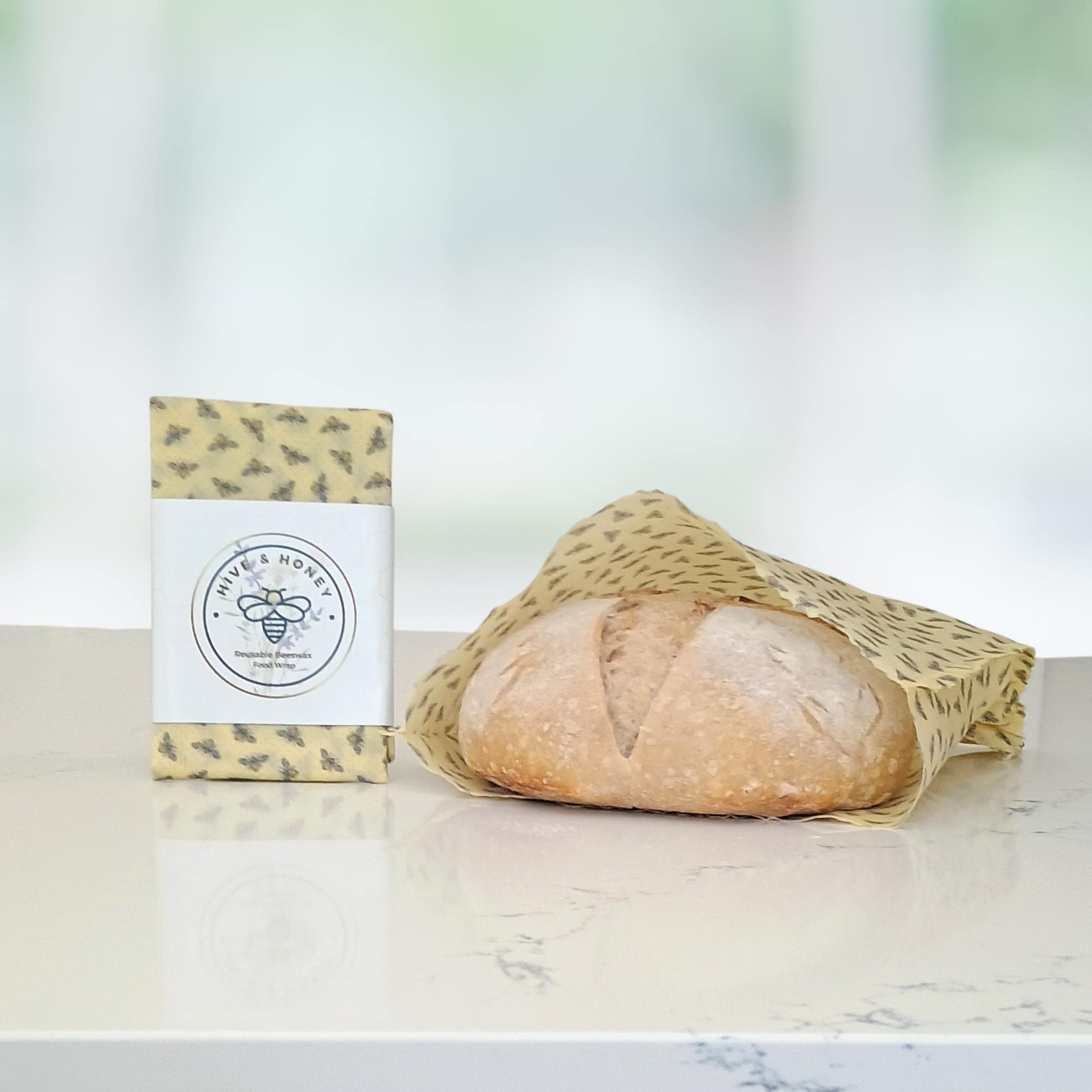 Great for Sourdough breads, melons, vegetables, homemade baked goods and so much more!  Hive & Honey beeswax food storage bags are made of 100% cotton fabric infused with a blend of beeswax from our hives and other local beekeepers, pine tree resin and coconut oil. Each bag is handcrafted in our Minnesota home studio to order.  Eco-friendly, zero waste and fully compostable!!